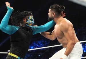 My money is on Jeff, just because he will always be amazing to me. However Almas is a talented wrestler. I love his tranquilo move he does on the ropes. As soon as the bell rings Almas is on Jeff like white on rice. Tranquilo, like clock work. You can see the age in Jeff. He’s not as fast as he used to be, but he still flys high. This match is a little boring to me, both of these guys can put on a good match. The move Almas did off the turnbuckle made my face hurt. Hits the twist of fate, swanton bomb. 1…2….3…. here is your winner Jeff Hardy. Called it, love when I am right.